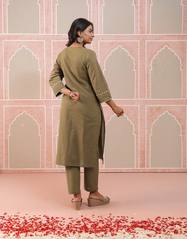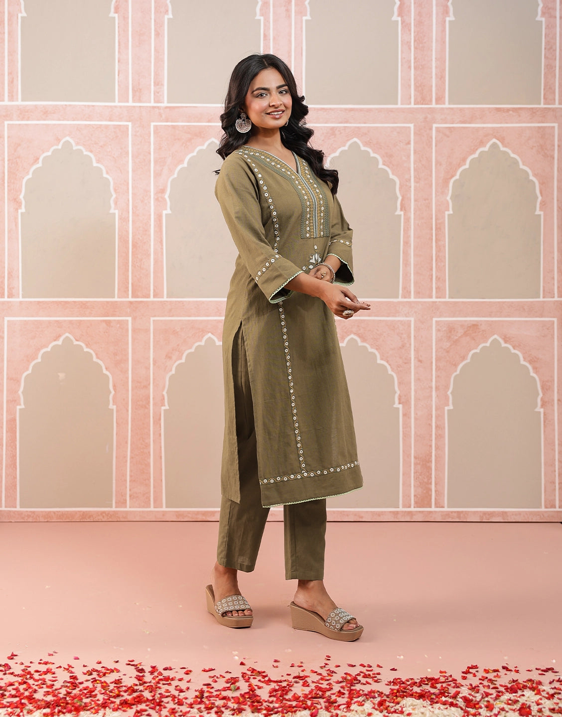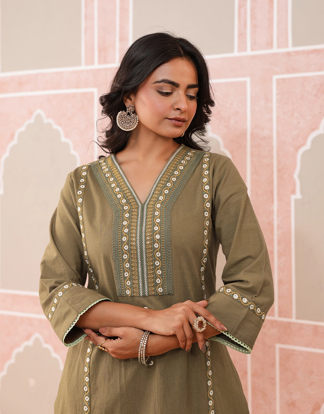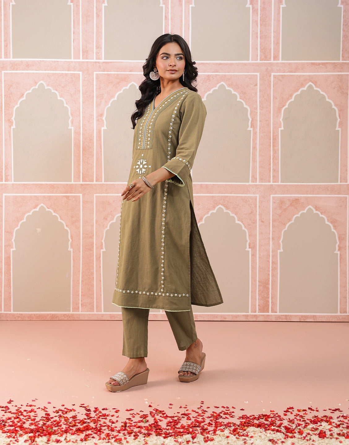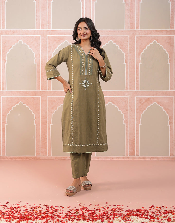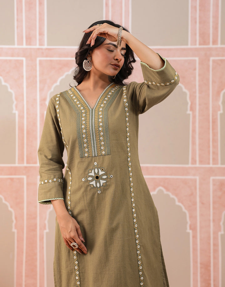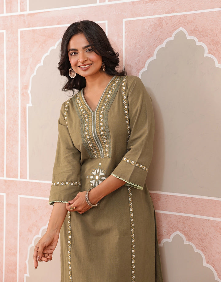 AYRA GREEN MIRROR EMBROIDERED KURTA