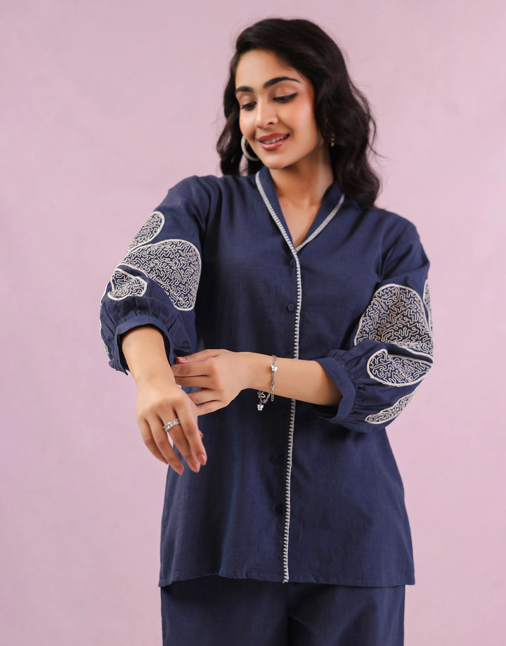 DANNY BLUE EMBROIDERED CO-ORD SET
