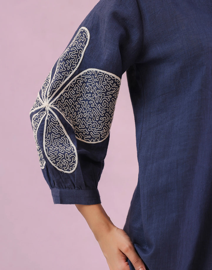 3/4 th puff sleeves with big bold flower embroidery details