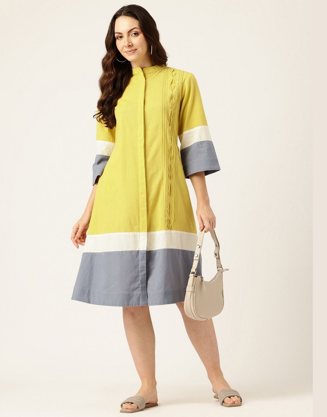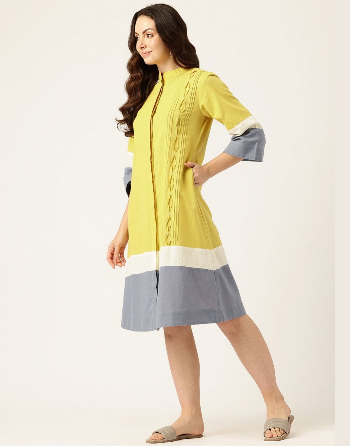 EIRA SOLID COLOUR BLOCKING DRESS