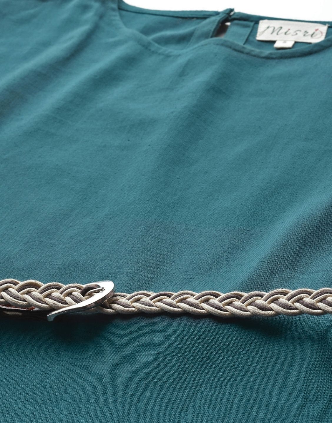 LIMA TEAL BLUE SOLID DRESS WITH BELT
