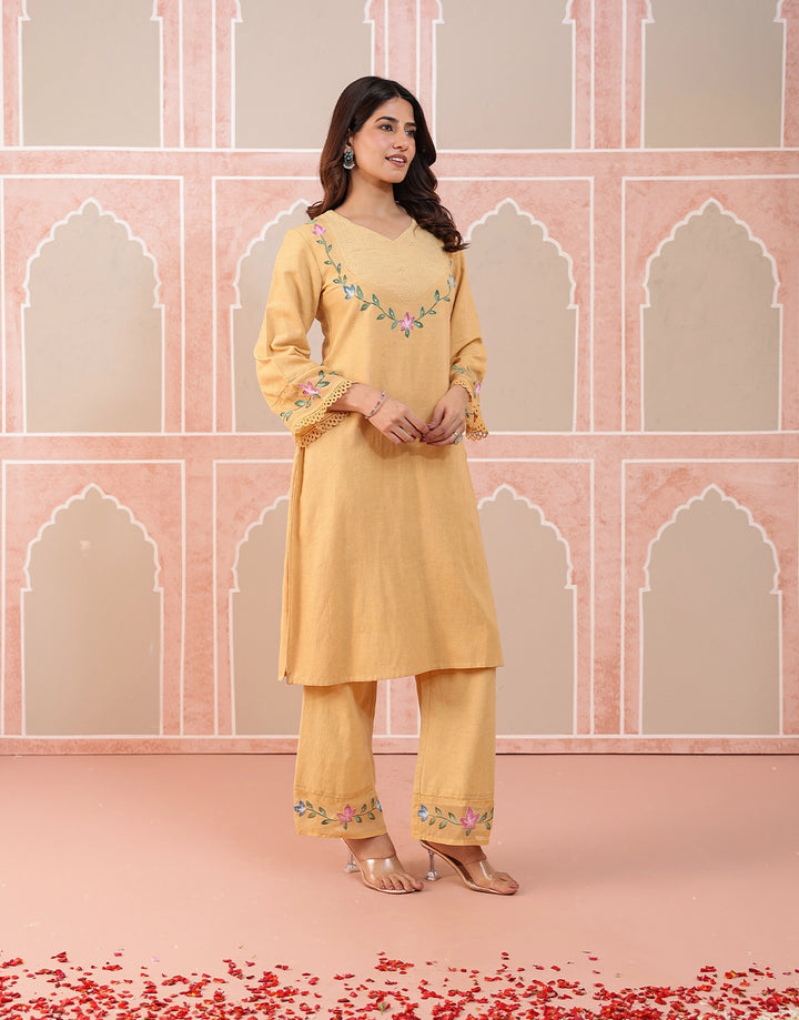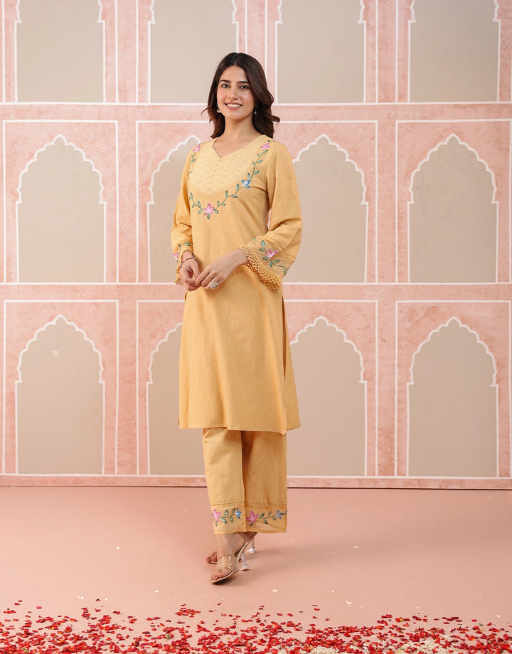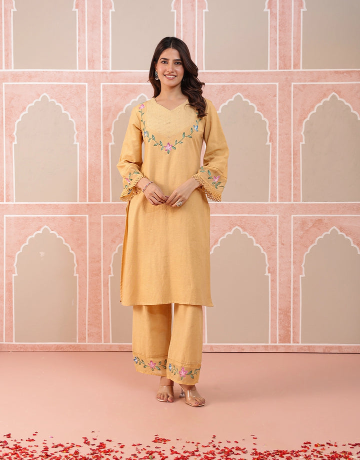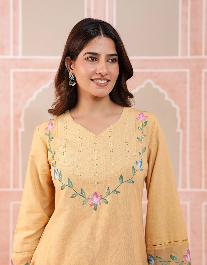 Brighten your wardrobe with this refreshing beige kurta set, a perfect blend of tradition and elegance.
