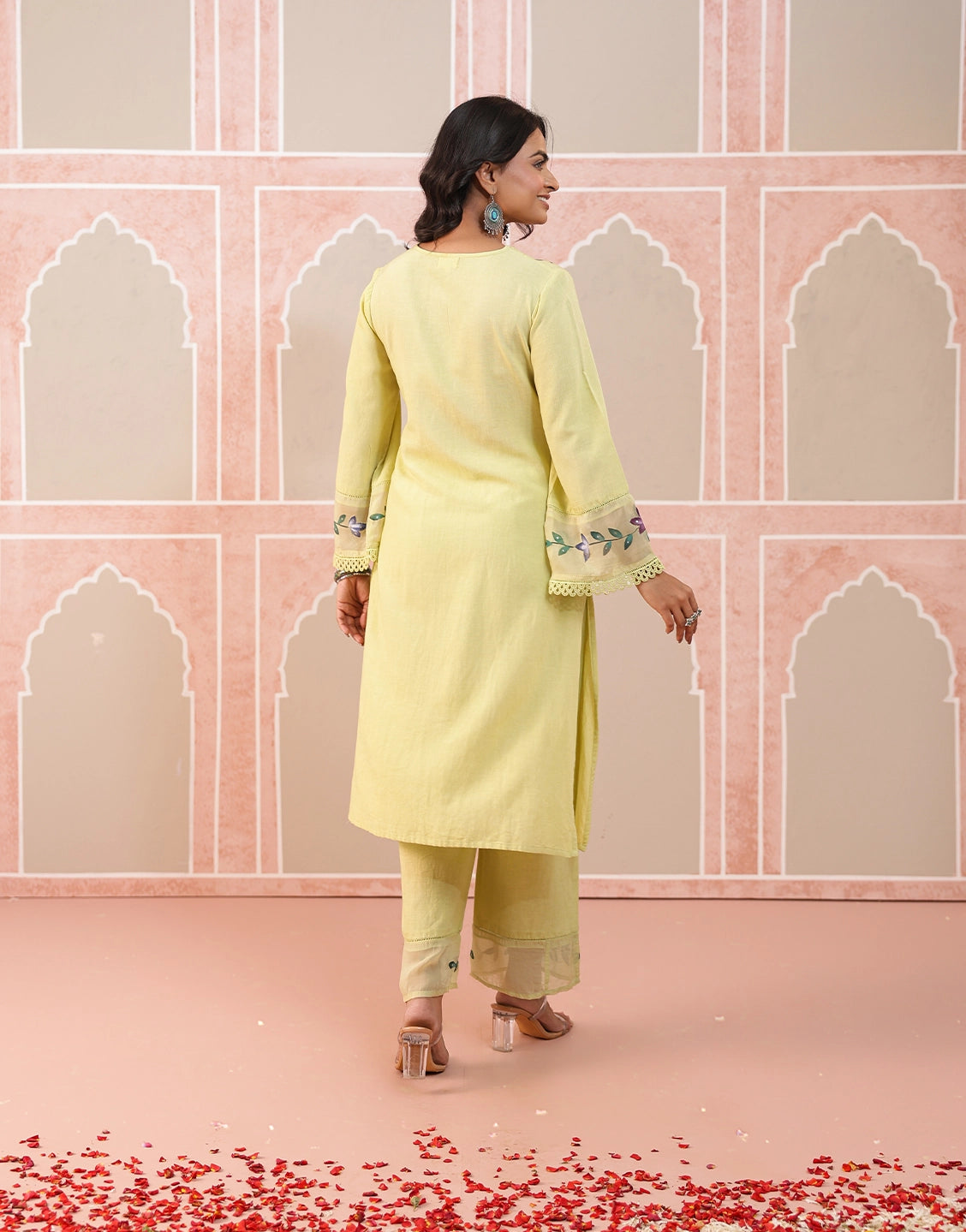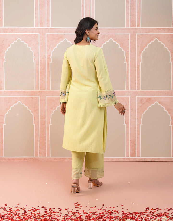 Brighten your wardrobe with this refreshing lemon-yellow kurta set, a perfect blend of tradition and elegance.