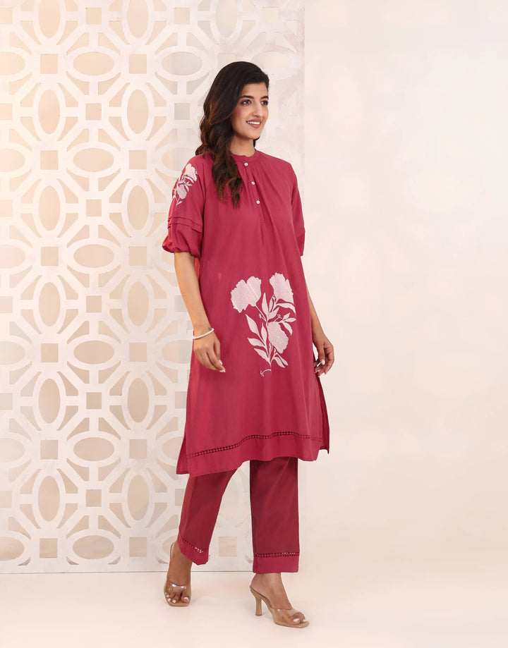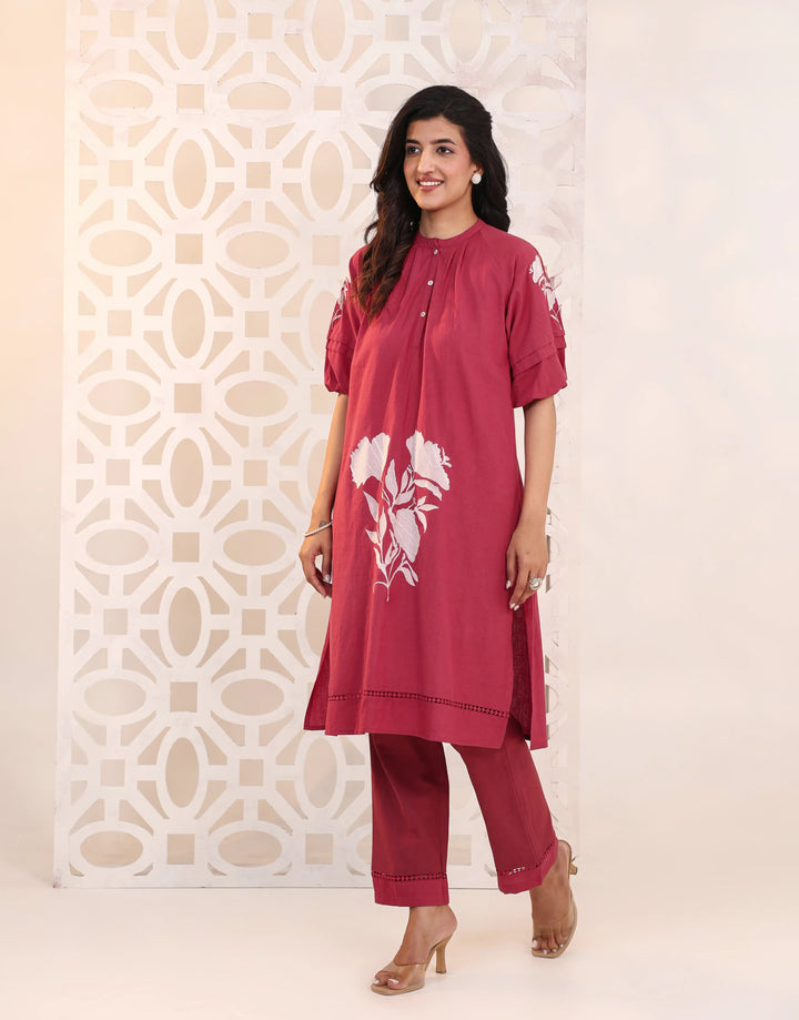RIMAYA ROSE RED FLORAL EMBROIDERED KURTA SET