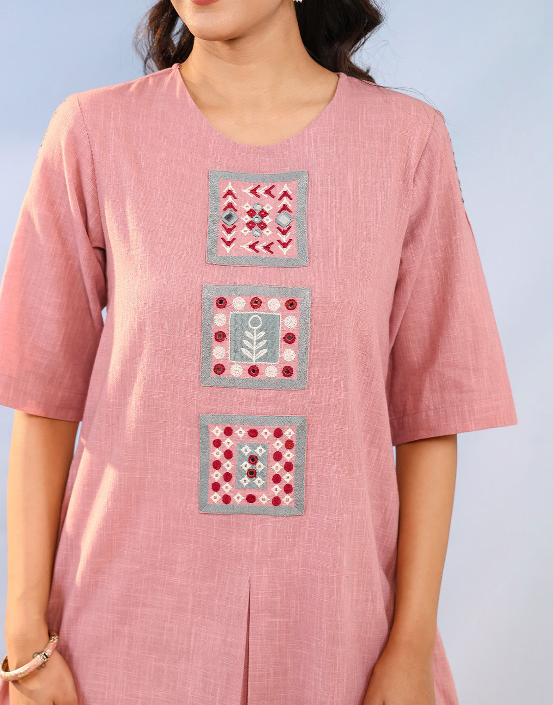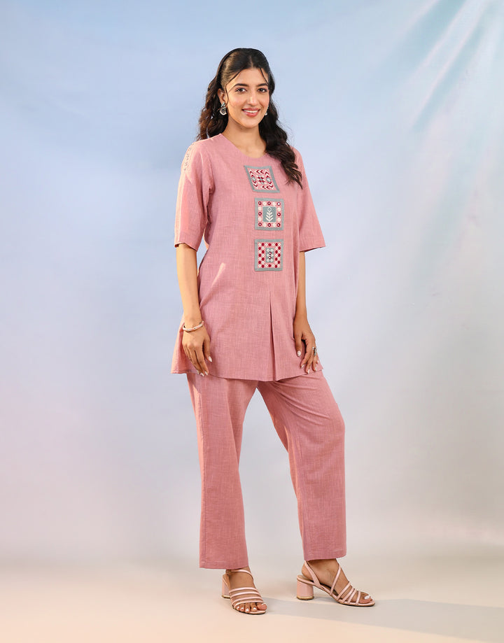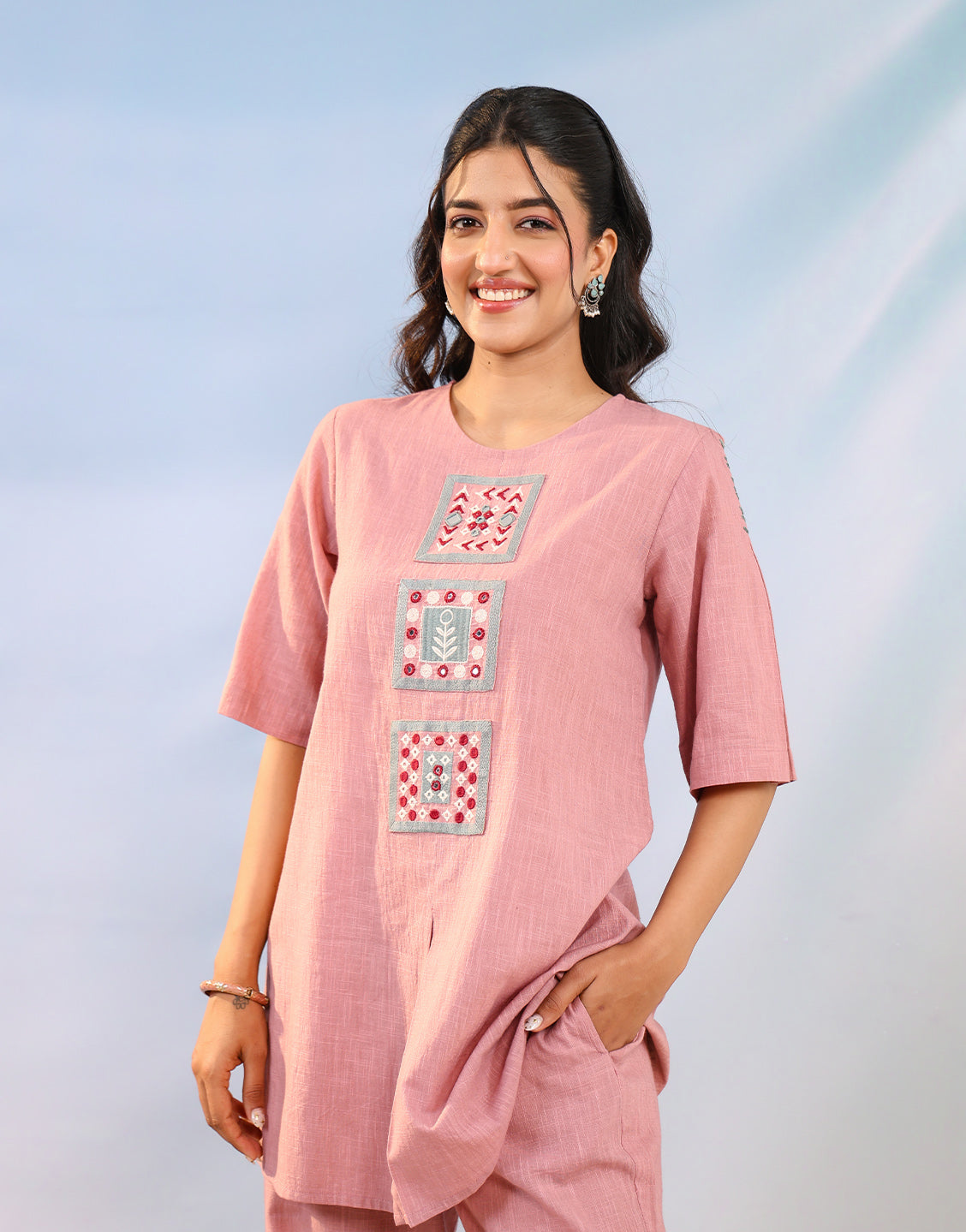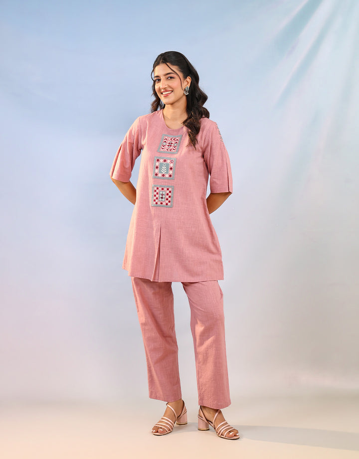 SONIYA PINK PATCH EMBROIDERED CO-ORD SET